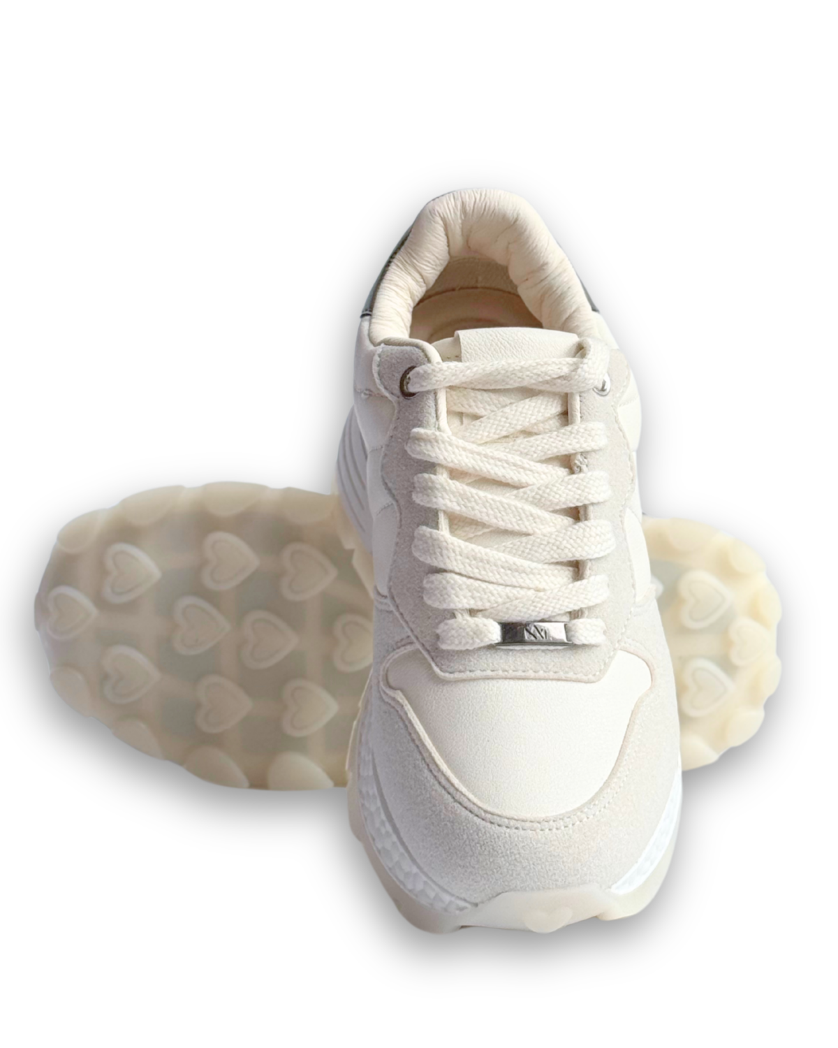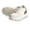 Tenis color crema en combinación con mocca mouse, el color de la temporada. Tienen detalle de taches en el contrafuerte, la combinación de la suela bicolor permite que sea un estilo atemporal.